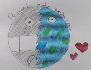 Seguimos con esta pasada de dibujo, hecho por Noelia. Mirad qué bien ha dibujado a nuestro planeta, antes y ahora. Vamos a luchar entre todos para que nuestro planeta sonría de nuevo.